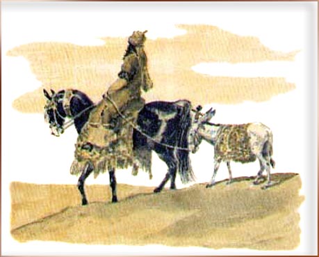 Он подпоясал свой праздничный халат пёстрым кушаком, сел на осла и уехал.