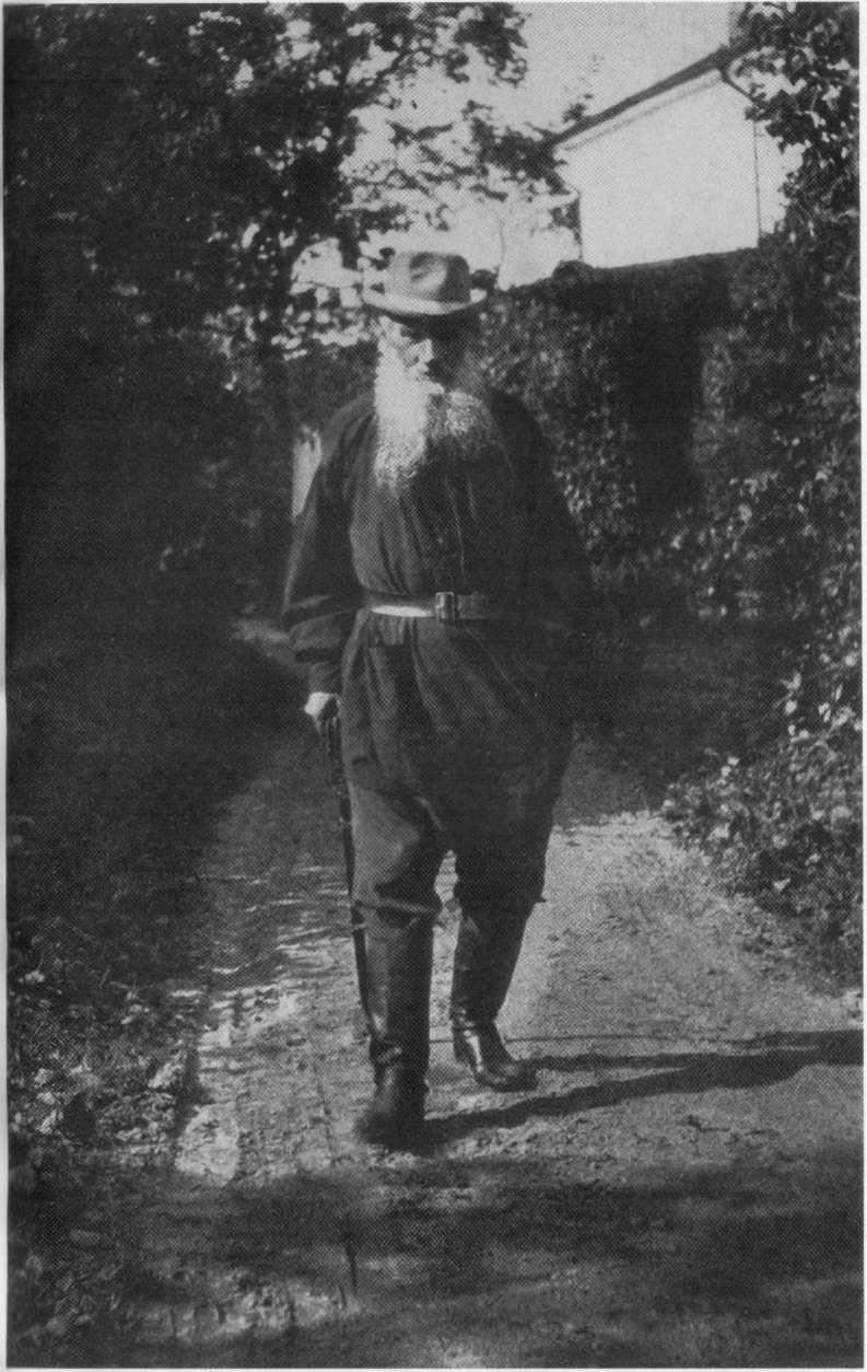 Лев Николаевич Толстой идет по аллее «Прешпект». Фотография А. Л. Толстой. Ясная Поляна, 1903 г.