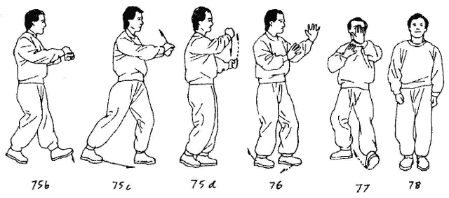 69. Удар кулаком в живот. 70. Ленивый закатывает рукава. 71. Семь звезд. 72. Верхом на тигре. 73. Развернуть наклонный лотос. 74. Застрелить тигра. 75. Спаренная пушка.