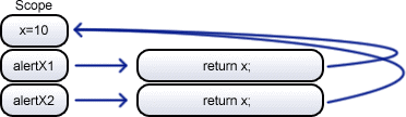 Если запустить этот пример в браузере и щелкнуть на каждой кнопке несколько раз, то можно заметить, что counting1 всегда выдает одно и то же значение, 1. counting2, с другой стороны, выдает увеличивающееся число. Почему это происходит? Посмотрим просто сначала на counting1. Можно видеть, что каждый раз при выполнении counting1 прежде всего создается переменная count и ее значение задается равным 0. В следующей строке переменная count увеличивается на 1. Оператор ++ пока еще не встречался. count++ просто увеличивает count на 1. Другими словами, это в точности то же самое, что написать count += 1 или count = count + 1. Поскольку увеличение на 1 является в программировании очень распространенным действием, то для него существует специальный оператор. Аналогично оператор – - вычитает 1 из переменной: count--. Каждый раз, когда функция counting1 выполняет alert(count), она сообщает значение новой переменной count , которое только что было определено как 0+1. Теперь посмотрим на counting2. Можно видеть, что переменная count в этом случае находится вне функции. Даже до вызова этой функции значение count задано как 0. При вызове counting2 прежде всего происходит увеличение переменной count на 1. Так как мы не восстанавливаем значение count в 0, как в случае counting1, то переменная count продолжает сохранять свое значение, и все происходит, как и предполагалось. Теперь читатель получил общее понимание некоторых фундаментальных понятий программирования и JavaScript, в частности. В следующей лекции будут рассмотрены циклы и формы.