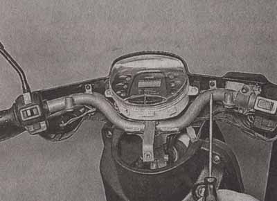 Приборная панель скутера, необходимая для полного контроля за машиной в движении, имеет, как правило, спидометр со встроенным одометром, тахометр, показывающий обороты двигателя, указатель уровня топлива, сигнальные лампы включенного дальнего света, давления и температуры масла, индикаторные лампы сигналов поворота. Следует сказать, что, в общем-то, скутеру с автоматической трансмиссией тахометр на нужен. Вариатор сам «подбирает» свое передаточное число, без участия водителя. Однако многие фирмы устанавливают тахометр, он украшает приборную панель и придает солидность маленькому скутеру. Кроме того тахометр облегчает регулировку карбюратора при ремонте и необходим при проведении тюнинга скутера.