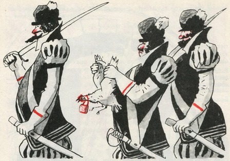 – Курочка убежала из курятника! – крикнули слуги в один голос. Король рассердился: – За такую дерзость бросить её в темницу!