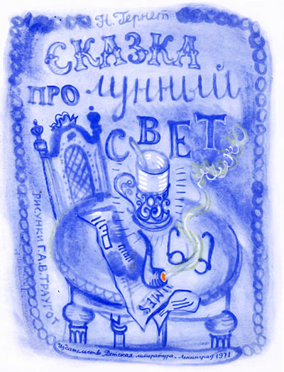 Луна плыла над полями, и поля лежали, как темные одеяла. Луна плыла над морями, а вода в морях была совсем черная. Луна плыла над городами, а в городах сверкали огоньки. И везде стояла темная ночь. Но на Луне было светло, потому что там было много лунного света. И котёнок зажмурился, потому что захотел спать.