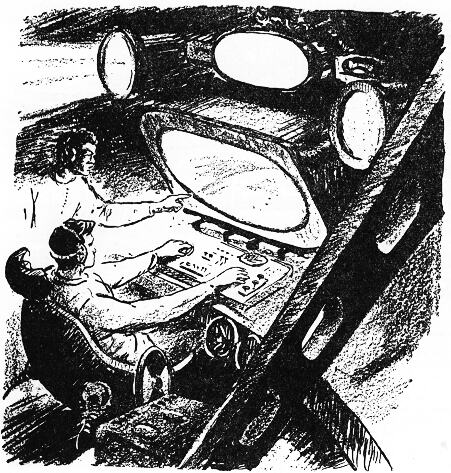 Диск планеты ширился на экране телевизора. — Да, идея открыть на Венере постоянную научную станцию грандиозна, — задумчиво произнес Гарги. — И по масштабам и по смелости. А помните, Нгарроба, как вы хотели захватить одного из обитателей Венеры, того юношу, что завладел электропистолетом Карбышева? И привезти его на Землю? — Ну что ж, — откликнулся Нгарроба, — это было тоже смелое решение. Но вы меня удержали. — Он рассмеялся. — А хотел бы я с ним встретиться еще раз. Прошлый раз полного взаимопонимания с людьми Венеры мы не достигли, надо сознаться. С лица Карбышева не сходило выражение озабоченности. Ольсен, отправивший всю армаду в путь и вылетевший затем на сверхскоростной ракете, чтобы прибыть на Венеру первым, молчал вторые сутки. Конечно, связь в районе Венеры капризная. Но сигналы автоматических станций наведения, заброшенных на планету, доходят до головного пассажирского корабля. Каждые десять минут дежурный докладывает обстановку. Но что может изменить сейчас начальник экспедиции? Автоматы подведут ракету почти вплотную к цели, — лишь самые последние сотни или тысячи метров он будет сам управлять кораблем. Карбышев смотрел на планету, медленно вырастающую на лилово-черном небе. Часть неба, видимая в иллюминатор, все уменьшалась. Наконец лишь темный ободок окружил ярко-голубой диск планеты. Затем ее сияние заполнило все окно. Включили оптические фильтры. На поверхности планеты стали видны светлые и темные пятна, застывшие завихрения. Медленно перемещались облачные образования. Тонкий долгожданный писк. Локаторы нащупали металлическое тело. — Считайте. — Голос Карбышева звучит сухо. — Одна, две, три… — докладывает Сун-лин. Он сейчас дежурный. — Шесть! Молчание. Сун-лин начинает считать заново. — Шесть, — повторяет он, — шесть. — Одна из пристрелочных отлетела далеко, — говорит кто-то успокаивающе. — Локатор мог не нащупать ее. Тогда счет сходится. — Начинаем торможение, — вмешивается равнодушный голос автомата. — Все по местам. Карбышев расслабляет мускулы и погружается в полузабытье. Очень хитрое искусственное полузабытье: десятки приборов, размещенных в одежде, следят за пульсом, кровообращением, положением внутренних органов, состоянием организма. И не просто следят, а принимают меры, чтобы сохранить условия биологического равновесия. Прошли времена, когда человек один на один встречал страшную силу, которая сплющивала его, вдавливала в кресло, путала сознание. Первые полеты в космосе были поистине героическими. На этом мысль Карбышева застопоривается. Электрогипноз делает свое дело. Проходит какое-то время, не ощущаемое Карбышевым, но строго отмеренное приборами, и в точно назначенное мгновение с него снимают забытье. Никакой перегрузки нет. Он свободно двигает руками и может ходить. — Берите управление в свои руки, — говорит автомат. Ракета висит в воздухе. Тормозные двигатели уравновесили ее. В иллюминаторах ничего не различишь. Лиловый кисель, сплошная облачность. Положив пальцы на клавиатуру управления, Карбышев медленно перемещает корабль. По экрану локатора ползет поверхность суши с языками заливов, пятнами зарослей, невысокими холмами. Вырисовывается предмет чуждых для живой природы строгих геометрических очертаний. Ракета наведения! Теперь Карбышев ведет корабль в другую сторону. Опять ракет