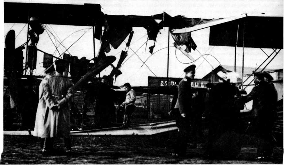 «Русский Витязь», повреждённый сорвавшийся мотором биплана «Меллер-II» во время конкурса военных аэропланов. Сентябрь 1913 года