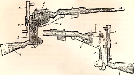 Рис. 8. Приспособление для стрельбы из винтовок из-за укрытий с самозарядной винтовкой обр. 1941 г. G 41 (W) (вид справа и слева).