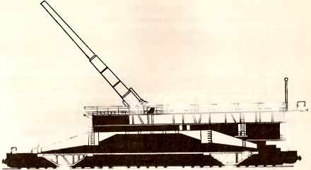 Рис. 49. Железнодорожный транспортер для перевозки мортир «Karl» (черным выделен корпус мортиры).