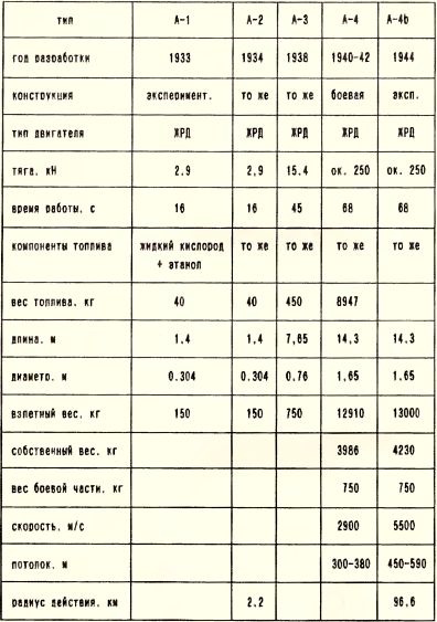 Основные характеристики германских баллистических ракет типа «А»