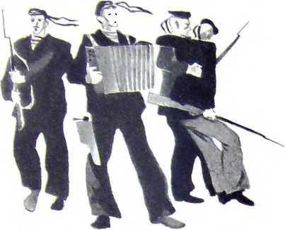 — Посторонних нет? Вопрос был задан для проформы. Комиссар Белышев и сам видел, что в помещении шестнадцатого кубрика не было никого, кроме членов судового комитета, но ему нравилась строгая процедура секретного заседания. — А какой черт сюда затешется? — ответили ему. — Матросы понимают, а офицера на веревочке не затащишь. Белышев вынул из внутреннего кармана бушлата конверт. Медленно и торжественно вытащил из него сложенную четвертушку бумаги, разгладил ее на ладони и, прищурившись, обвел настороженным взглядом членов комитета. Это были свои, испытанные, боевые ребята, и все они жадно и загоревшимися глазами смотрели на бумагу в комиссарских руках. — Так вот, ребятки, — сказал Белышев, — сообщаю данное распоряжение: "Комиссару Военно-революционного комитета Петроградского Совета рабочих и солдатских депутатов на крейсере "Аврора". Военно-революционный комитет Петроградского Совета рабочих и солдатских депутатов постановил: поручить вам всеми имеющимися в вашем распоряжении средствами восстановить движение на Николаевском, мосту". В кубрике было тихо и жарко. Где-то глубоко под палубами заглушении гудело динамо" да иногда по подволоку прогрохатывали чьи-то быстрые шаги. Члены комитета молчали. И несмотря на то что глаза у всех были разные — серые" карие" ласковые" суровые" — во всех этих глазах был одинаковый острый блеск. И от этого блеска лица были похожи одно на другое. Их освещал одинаковый свет осуществляющейся" становившейся сегодня явью вековой мечты угнетенного человека о найденной Правде, которую сотни лет прятали угнетатели. — По телефону передали из ревкома, что это распоряжение самого Владимира Ильича… Товарищ Ленин ожидает, что моряки не подведут, — добавил Белышев тихо и проникновенно, и опять по лицам пробежал задумчивый и взволнованный свет. — Ты скажи, Саша, пусть товарищ Ленин пребывает без сомнения, — обронил кто-то, — если он хочет, так скрозь что угодно пройдем. — Значит, постановлено? Возражающих нет? — спросил комиссар. Он был еще молод, молод в жизни и молод в политике, и любил, чтобы дело делалось по всей форме. Члены комитета ответили одним шумным вздохом, и это было вполне понятной формой одобрения. — Тогда предлагаю обмозговать выполнение задачи. — Белышев бережно спрятал в бушлат боевой приказ Петроградского Совета. — Сколько людей понадобится и каким способом навести мост. — Способ определенный, — сказал, усмешливо скаля мелкие зубы, Ваня Карякин, — верти механизм, пока не сойдется, вот тебе и вся механика. Но шутка не вызвала улыбок. Настроение в кубрике было особенное, строгое и торжественное, и Ваню оборвали: — Закрой поддувало! — Ишь нашелся трепач… Ты время попусту не засти. Без тебя знаем, что механизм вертеть надо. С рундука встал плотный бородатый боцманмат. — Полагаю, товарищи, что дело серьезное. На мосту и с той стороны, на Сенатской и Английской набережной, юнкерье. Сколько их там и чего у нихесть, нам неизвестно. Разведки не делали. Броневики я у них сам видел. А может, там где-нибудь в Галерной и артиллерия припрятана. От них, гадов, всего дождешься. И думаю, что на рожон переть нечего, а то оскандалимся, как мокрые куры, и дела не сделаем. — Что ж ты предлагаешь? — спросил Белышев. — А допрежде всего выслободить корабль из этой мышеловки. Черта мы тут у стенки сотворим. Первое дело — 