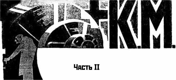 Сквозь сеть молний медленно проступает большой город, где, как в заброшенном склепе, царит хмурая темень. Тяжкой пеленой легла на всем ржавая пыль; сурово щерятся выбитыми стеклами и разрушенными стенами мертвые заводы; красно-рыжей ржавчиной покрылись кладбища паровозов: раскинули повсюду изуродованные колеса, рычаги, трубы…