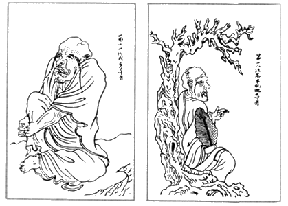 Легендарный основатель даосизма, великий и мистичный мудрец Лао-цзы, на картинах предстает перед нами в виде полысевшего старика с шишковидной головой, заканчивающейся все тем же странным «гребнем». Вряд ли стоит однозначно полагать, что действительно все эти люди — и Фуси, и Конфуций, и Бодхидхарма обладали странными наростами на голове. Не приходится говорить и о многочисленных даосских божествах, вообще отличающихся повышенной «бугристостью» головы. И эти наросты всегда сополагаются с понятием запредельной мудрости и небесного откровения. Фактически речь идет о иском «воспоминании» о неких странных формах головы древних предков, и бугор на макушке в той или иной форме — намек на мистическую связь с их знаниями. Фуси — Лао-цзы — Конфуций — Бодхидхарма… Не напомнит ли нам эта галерея «великих мудрецов» какой-то другой ряд? Конечно же, это — линия «передачи истины» или «передачи пути», которая активно обыгрывалась в ряде философских школ и до сих пор присутствует в качестве основополагающей теории в ряде религиозный сект. Но вот еще один феномен первобытной культуры, на который неоднократно обращали внимание специалисты. Дело в том, что на многих неолитических изображениях мы видим стилизованные фигуры людей без головы. Например, китайская культура Мачан вообще базируется на изображениях «безголовых людей». Встречаются, правда, и безголовые животные. Как пытались объяснить это явление? Наиболее естественным казалось, что «лишение» животного головы связано с древнейшей животной магией: якобы, именно таким образом животного символически лишают наиболее опасной части тела. Ну а безголовые люди? Немецкий антрополог З. Гидион предложил такое решение: речь идет о древнейших шаманах, а точнее, о самом моменте их инициации, проникновения в таинства мира. Инициация связана с немалыми физическими муками (вспомним, кровавые надрезы на теле и татуировки, которые до сих пор наносятся в момент инициации у племен Центральной Африки), в число которых входит и символическое «обезглавливание». Предположение остроумное, но весьма сомнительное, ибо не очень понятно, почему речь идет именно о лишении головы, а не других частей тела, разрубании лопатам и т. д. А вот в свете того, что, возможно, в древнем мире голова (точнее — ее особая форма) была связана с понятием сверхчеловека или божества, то все становится на свои места. Вспомним многочисленные запреты на изображения божеств и духов в древности (в исламе они сохраняются до сих пор), а поэтому можно было лишь символически намекнуть, что речь идет именно о ком-то высшем. Отсутствие головы непосредственно указывает на ее «нечеловеческую» форму.
