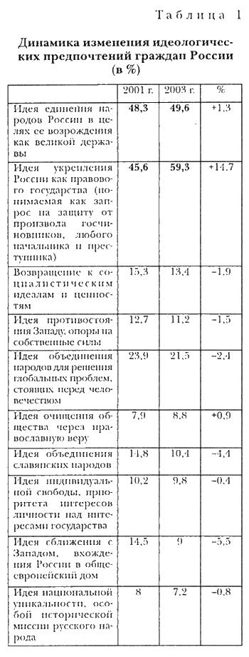 Проведенное Фондом «Социальная инноватика» исследование «Качество жизни населения регионов России» выявило наличие социального запроса на патриотическую идеологию, в содержание которой большинство граждан включает возрождение духовности, нравственности на основе исконно русского патриотизма, державности, традиционности, ставящей во главу угла защиту «интересов людей». Как видно из приведенной ниже таблицы, наибольшую поддержку россиян находят идеи державности и укрепления государственности. Так, идею «укрепления России как правового государства» поддерживает подавляющее большинство жителей во всех регионах, в которых было проведено исследование. Причем эти результаты — это не спонтанная оценка граждан, которая может измениться. Это осознанная позиция, устойчивость которой может быть подтверждена динамикой результатов исследований, проводимых ранее. Прежде всего необходима трезвая оценка сложившейся ситуации на основе установления предельно допустимых значений социальных показателей, определения той критической черты, за которой утрачивается способность к нормальной жизнедеятельности. Наглядное представление о проблеме дает таблица, составленная В. Куликовым на основе разработки «Социальная и социально-политическая ситуация в России. Анализ и прогнозы» / Отв. ред. Г. В. Осипов. — М., 1995 (табл. 2).