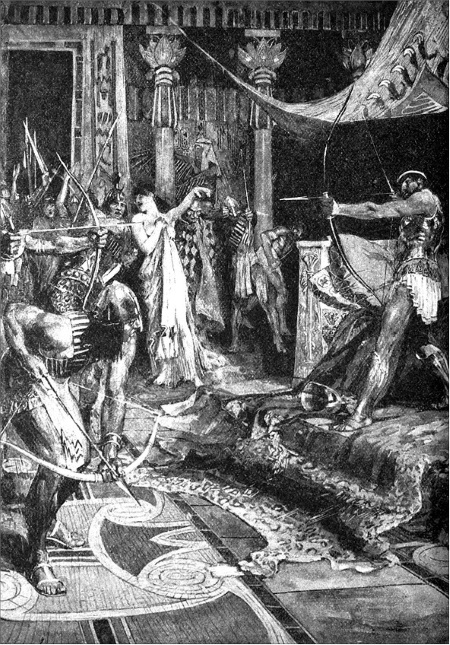 Наваждение исчезло, перед Элиссой распахнулись золотые ворота дворца Баалтис. Жрицы усадили ее на золотой трон в форме полумесяца и набросили на нее черное покрывало, усеянное россыпью звезд, — символ ночи. Затем, удалив всех непосвященных, они совершили обряд тайного поклонения. В страхе и изнеможении Элисса откинулась на спинку трона. Наконец ее отнесли на отделанную слоновой костью кровать Баалтис, истинное чудо ремесленного мастерства и аллегорического искусства, — и оставили одну.* * *
