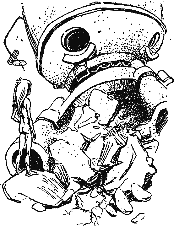 На поляне, среди крупных ярко-красных цветов, танцевала светловолосая девушка, — смеющиеся складки прозрачной одежды бесшумно трепетали от мягкого ветерка. Тихая, ласковая мелодия подхватила ее, словно падающий осенний лист, закружила в воздушном вальсе. Осторожно ступала девушка по венчикам цветов, и самые крупные из них слегка покачивали мохнатыми чашами, словно удивлялись ее необыкновенной легкости. В конце поляны, на темно-серой скале, круто обрывавшейся в долину, сидел Одинокий. Теплый сумрак уже размыл очертания построек, и только темно-зеленый массив леса выделялся на пурпурном фоне горы. Девушка исчезающим движением закончила танец и опустилась на камень. — Ты совсем не смотрел на меня, — сказала она, обиженно полураскрыв губы. — Нет, нет, я все видел, — ответил мужчина. Влажная темнота его зрачков осветилась лаской и потемнела еще больше. Просто я задумался. Встреча с Теем и еще… — тихо добавил он и, не закончив, умолк. — И еще о Гельме, — подхватила девушка. — И о ней, — мягко подтвердил Одинокий. — Ты не должна… — Он запнулся, не находя слова… — Я не сержусь, — горячо зашептала светловолосая. — Я завидую. Если бы я могла быть с тобой там или не пустить тебя. Извечное желание женщины спрятать любимого. Они помолчали. — Расскажи мне о Гельме. — Это не так просто. Впрочем, смотри. На ладони Одинокого замерцала фиолетовая звезда. Раздался звук столкнувшихся хрустальных шаров — и вокруг посветлело. Гибкий черноволосый мужчина спускался по ступенькам амфитеатра. Множество пестро одетых людей, наполнявших зал, повернуло головы, пристально рассматривая незнакомца. Он остановился в центре акустического круга и заговорил убежденно и напористо, подбирая сочные, сверкающие новизной факты. Он говорил о тайнах генетики, о сложных биохимических процессах зарождения жизни, и колонки светящихся цифр вспыхивали за его спиной, сопровождая рассказ. Одна из фраз вырвалась из общего русла речи, словно многоцветная радуга: «Биохимики изобрели плазмонит, из которого в результате длительных эволюции на безжизненных планетах должны возникнуть подобные нам». И опять за его спиной вспыхнули формулы, змеями поползли диаграммы. «Это Тей, — просочился голос Одинокого, — Тей». А незнакомец уже говорил о тайнах сверхновых звезд и о постройке корабля, который сможет проникать в их раскаленные недра. В скрещенных лучах медленно проплыл хрустальный корабль. «Его назвали «Гельма», - снова прозвучал голос Одинокого, и фиолетовая звезда погасла. Девушка встала. Налетевший ветер подхватил ее волосы, они рассыпались по плечам и зашептались с ним. — Ты расстроен… — Пустяки, — сказал он, растирая в пыль слипшийся комочек песка. Несколько секунд к чему-то прислушивался и, поборов колебания, поднял голову. — Лита, ты помнишь, где построили станцию по исследованию антипроцессов? — Конечно, Зеленое озеро. Там чудесно! — не задумываясь, ответила она. — А что? — Так. Мы забываем о колыбели. — Он шутливо постучал по каменистой почве. — Сегодня я исследовал ядро планеты, и мне показалось, что оно изменилось. Сужается, что ли… Смешно… — В его глазах вспыхнули виноватые огоньки. — Просто ты начитался Тея, — ласково взъерошив ему волосы, проговорила девушка. Они опять помолчали. Последний отблеск алого солнца погас на вершине горы, и мягкий полусумрак начал св