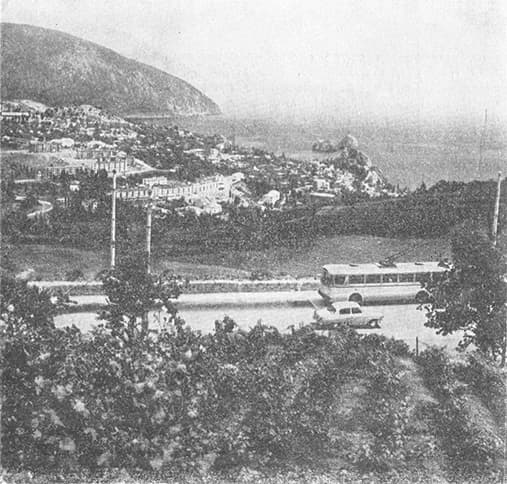 Знакомством с областным центром Крыма начинается это путешествие. Туристы совершают экскурсию по городу, посещают областной краеведческий музей, экспонаты которого дают полное представление о природе, истории и экономике полуострова, выезжают в Бахчисарай, где осматривают экспозицию историко-археологического музея. После двухдневного пребывания в Симферополе ваша группа покидает гостеприимную турбазу. Теперь путь лежит к югу — в Алушту. Автобус мчится по широкому, ровному шоссе, поминутно обгоняя троллейбусы с надписями на табличках: «Симферополь — Алушта», «Симферополь — Ялта». Такое удобное шоссе появилось в Крыму сравнительно недавно. Первая почтовая дорога от Симферополя до Алушты была проложена в 1824―1826 гг., а в 1837 г. продолжена до Ялты. Узкая, со множеством поворотов старая дорога причиняла много неприятностей и пассажирам, и водителям. До Великой Отечественной войны ее несколько раз перестраивали, но это не решало транспортной проблемы. В 1959 г. было начато строительство новой магистрали — горной троллейбусной трассы.
