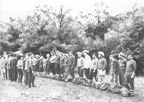 Спустившись с высоты, туристы осматривают на берегу Бурульчи партизанскую мельницу. Построена она была в 1942 г. партизанами К. Загородним и А. Зыковым, во время июльских боев разрушена, а в 1943 г. вновь отстроена отрядом О. Козина. Глухо шумит речка. Повисло над ней неподвижное мельничное колесо. А было время, мельница работала, молола в сутки 120―150 килограммов муки. На следующий день туристы совершают поход к водопаду Джур-Джур. Вначале идут по широкой тропе вверх по течению небольшой речушки, затем выходят на лесную дорогу, которая вскоре сворачивает вправо и перерезает лесной массив на северном склоне горы Тырке; поднимаются на высотку, откуда виден и гигантский гребень Тырке, вершина горы Кара-Тау (1260 м), самая высшая точка плоскогорья, и участками сама Караби-яйла. От высотки часа полтора пути по горной дороге, затем спуск по тропе к водопаду. Описание его читатель найдет в главе «По юго-восточному Крыму». На стоянку туристы возвращаются в тот же день. А утром следующего — опять переход (18 км) на стоянку «Бурульча». Тропа идет вначале вдоль русла речки, потом, делая плавные повороты, поднимается к скалам. Зовутся они Мокроусовскими. На просторной поляне можно увидеть остовы разрушенных шалашей, построенных в апреле 1942 г. В годы гражданской войны отряды повстанческой армии под командованием А. В. Мокроусова ходили отсюда на боевые операции. В 1942 г. в этом районе базировались Центральный штаб крымских партизан и штаб 2-го района. Тропа, проложенная много лет назад народными мстителями, ведет на безлесное плоскогорье Орта-Сырт. Метрах в трехстах к востоку хорошо просматривается сравнительно ровная, обширная площадка. В годы войны здесь был малый партизанский аэродром (большой, главный, находился на Караби-яйле, в десяти километрах к востоку отсюда). На малом аэродроме в марте 1942 г. первым сел летчик С. Н. Морозов. С тех пор здесь неоднократно приземлялись неутомимые и бесстрашные У-2. Неподалеку в неширокой, заросшей лесом Голубиной балке в июле 1942 г. на заставе Красноармейского отряда отважно дрались с врагом Петр Пурис, Гаймай Назметинов и Андрей Сурков. Они остались в прикрытии, чтобы дать отряду уйти из вражеского кольца. Погибли все трое, выполнив до конца свой воинский долг. Похоронены они на склоне высоты 1025. От Голубиной балки поднимаемся к горе Яман-Таш, «родной сестре» высоты 1025. Обе они принадлежат плоскогорью Орта-Сырт. Обе были ключевыми позициями в боях крымских партизан с гитлеровцами. Бои на Яман-Таше шли на протяжении всей партизанской войны. Мы расскажем о декабрьских 1943-го, январских 1944 гг. Гитлеровское командование разработало план очередного генерального наступления на партизан. Около месяца велись артиллерийский обстрел и бомбежка лагерей. К лесам стягивались вражеские соединения. Бои шли среди скал, в ущельях, по склонам гор. На Яман-Таше дрались с врагом 5-я и 6-я бригады, позже на помощь им пришла 1-я бригада. Бои велись под руководством центральной оперативной группы, командиром ее был П. Р. Ямпольский, комиссаром — Н. Д. Луговой. Нелегко пришлось партизанам, особенно если учесть, что под их защитой в то время находилось около четырех тысяч стариков, женщин, детей — жителей окрестных сел, спасавшихся от фашистского произвола. Маневрируя, проявляя величайшее мужество, защищали патриоты свои позиции. Немало славных с