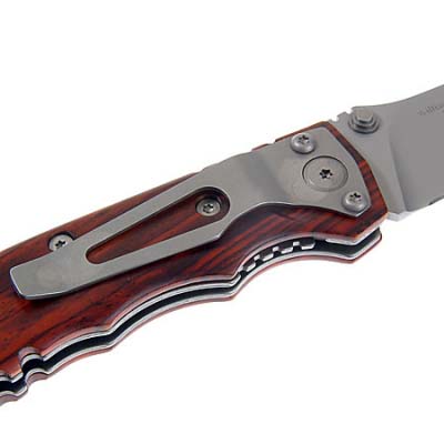 Открывать нож можно многими способами. Благодаря шайбам из фосфорной бронзы, служащими прокладками между рамой рукояти и лезвием (так как титан увеличивает силу трения) клинок открывается исключительно легко. Кроме этого, при инерционном открывании ножа лезвие стопорится настолько мощно, что иногда приходится отжимать лайнер второй рукой. Лично у меня сложилось впечатление, что именно инерционное (встряхиванием) открывание и предусматривалось Уильямом Харси как основной способ. Иначе почему штифты для открывания клинка (с двух сторон в форме пирамид Ацтеков) имеют высоту всего 2 мм? Это, возможно, еще одно ухищрение разработчиков, стремящихся придать инерционнику, который в ряде стран запрещен к свободной продаже, черты мирного ножа. Вместе с тем, «одиноким волкам» при разработке «Рейнджера» и запуске его на рынок удалось политкорректно соблюсти видимость приличия. Например, меня умиляет эта чисто американская цифра «99» в характеристике длины лезвия ножа. При этом, от рукояти до начала РК 7 мм. Чоил, так любимый отдельными компаниями, отсутствует. Длина РК составляет те самые 99 мм. То есть, что обещали в ТТХ ножа, то и дали, до миллиметра. То, что разработчики избавились от фальшлезвия, тоже показательно. Зачем пугать обывателей боевой геометрией, если от этого колющие свойства клинка данной конкретной модели ничего не выиграют? Финские ножи прекрасно обходятся без фальшлезвия, что подтверждается тем фактом, что пуукко вот уже 200 лет добросовестно служат хмурым северным соседям в качестве военных ножей.