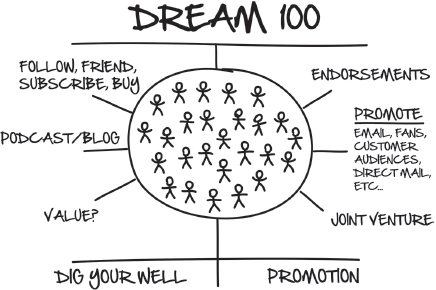 Когда я впервые услышал, как Чет объясняет, как работает "Мечта 100", я понял, что, вероятно, есть 100 человек, у которых уже есть клиенты моей мечты. У них был трафик. Мне не нужно было создавать их, мне просто нужно было придумать, как заставить этих людей прийти и увидеть мою новую возможность.