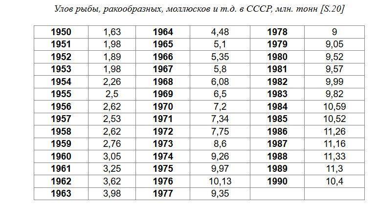 Продолжение приведенной таблицы потребления продуктов питания. Как видно даже в 2020 году потребление основных категорий выросло по сравнению с 1980 отнюдь не драматично.