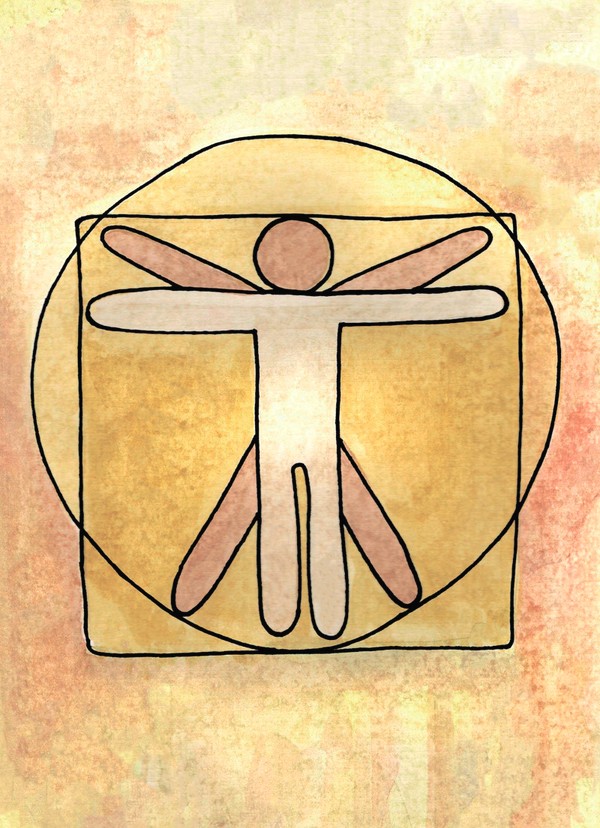 Леонардо фактически заново открыл эти пропорции. Он утверждал: «Человек — есть модель мира». И символом этой модели стал Витрувианский человек. Кстати, надо помнить, что это пропорции взрослого тела. У ребёнка они совсем другие. Значение этого рисунка в том, что только идеальные пропорции тела человека позволяют позицию с разведёнными руками и ногами вписать в круг, а с разведёнными руками и сведёнными ногами — в квадрат. Однако учение о пропорциях Марк Витрувий написал исходя из теории «золотого сечения», или «божественной пропорции». Считается, что все вещи, которые содержат в себе золотое сечение, воспринимаются людьми как наиболее гармоничные. Пирамиды в Египте, античные храмы в Афинах, все картины Леонардо да Винчи и многие другие шедевры искусства были созданы по принципу золотого сечения. Даже не вдаваясь в расчёты, золотое сечение можно без труда обнаружить в природе. Это и соотношение хвоста и тела ящерицы, расстояния между листьями на ветке. Есть золотое сечение и в форме яйца, если условную линию провести через его наиболее широкую часть. Модельеры и дизайнеры одежды все расчёты делают, исходя из пропорций золотого сечения. Человек — это универсальная форма для проверки законов золотого сечения. Конечно, от природы далеко не у всех людей пропорции идеальны, что создаёт определённые сложности с подбором одежды. И сегодня в любом изобразительном искусстве стараются следовать пропорциям золотого сечения, так как они облегчают восприятие произведения и создают у зрителя ощущение красоты формы. Этот рисунок представляет собой принципы строительства всего во Вселенной. Так Леонардо да Винчи постарался воплотить математику в живописи. Леонардо считал математику основой не только строительства и архитектуры, но и скульптуры, и живописи, и многих других наук. Он стремился всеми доступными способами пополнить свои скудные навыки в этой области человеческих знаний. Да Винчи был очень рад возможности познакомиться с трудами известного математика, астронома и знатока механики Джованни Маркиани, тогда уже покойного. Его труды, в том числе и ещё не изданные, маэстро давали читать сыновья учёного. В это же время Леонардо дружил с миланским юристом Фацио Кардане, отцом и наставником знаменитого механика Джироламо Кардане. Кардане, хоть и служил юристом, был страстным любителем математики и поклонником древнегреческого учёного Евклида. Фацио постоянно снабжал Леонардо книгами по математике. Вскоре в Милан приехал известный учёный-математик Лука Пачоли, которого Лодовико Моро пригласил для чтения лекций в только что созданном Миланском университете. Да Винчи очень сильно занимала математика и всё, что с ней связано. Ведь он был самоучкой. Он начал посещать лекции Пачоли. Через недолгое время Лука и Леонардо стали друзьями. Маэстро почерпнул у Пачоли немало интересного для себя. И сделал иллюстрации к некоторым его книгам. В результате Леонардо да Винчи стал отличным математиком. Кстати, он первый в Италии, а может быть и в Европе, ввел в употребление знаки «+» (плюс) и «−» (минус).