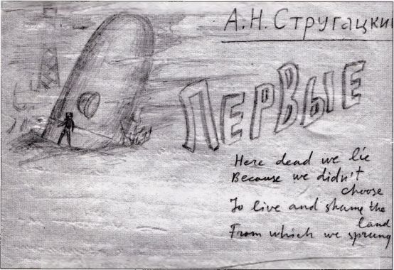 Как пишет Б. Н. Стругацкий в «Комментариях»: «К 1955 году у нас было: <...> — «Первые» — чрезвычайно эффектный и энергичный набросок несостоявшейся фантастической повести, задуманной некогда АН (и использованный позже в «Стране багровых туч»)». Энергичный — да! Рукописный, карандашом, даже с рисунком, на половинках страниц обычного писчебумажного формата... Набросок этот сохранился в двух вариантах. Привожу оба. Первый вариант:А. Н. Стругацкий. Первые