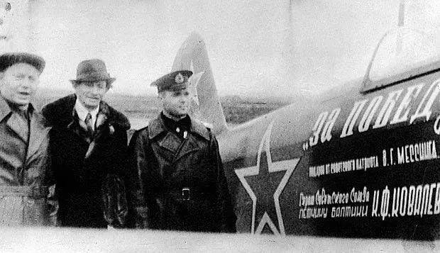 Вольф Мессинг у самолета, построенного на собственные деньги