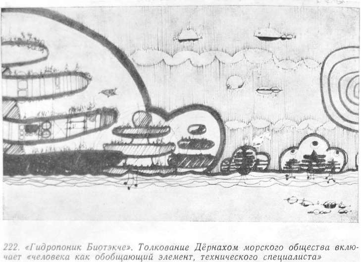 Это, несомненно, является коренной проблемой всех работ, устремленных в будущее. Архитектура служит людям, и независимо от того, является ли она произведением искусства или нет, она не выполняет своего назначения, если перестает служить им. Возможно, что основным назначением, кото-рое в конце концов архитектура призвана исполнить, может быть ее самоисключение. Когда мы решим проблему увеличения досуга, когда мы, наконец, решим проблемы пищевых ресурсов, когда мы признаем необходимость самоконтроля над численностью народонаселения, когда мы используем возможность создания комфортных жилищных условий, тогда, вероятно, мы обнаружим, что архитектура станет неуместна, и мы окажемся в новом мире poesie faite par tous