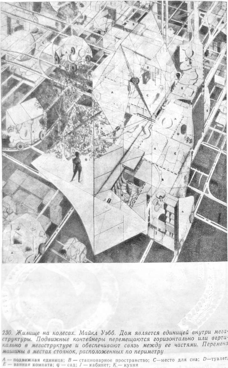 Хаузерманна, усеченные октаэдры Экуана, проекты группы НЭР, город-башня Росси и Мадзолени и большинство работ группы «Аркигрэм».Однако некоторые работы группы «Аркигрэм», например «Мгновенный город», содержат элементы побуждения, вторичного мышления и неизменного революционного подхода, создающего основу для развивающейся школы, которая может породить новую эру в архитектуре, школы, которая использует тактику сокрушительных атак, заключающихся в том, что «черное — это белое», в давно забытой силе волнения, вызываемого открытием, в удовольствии, доставляемом идеями и общением, — в том, что составляет часть многих предложений, которые, к сожалению, оказывают неодинаковое воздействие, потому что их ясность затуманена зрительными образами. Это те идеи, которые не могут быть облечены в форму проектов, и