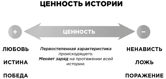 Под ценностью мы понимаем дихотомию положительного и отрицательного — жизнь/смерть, любовь/ненависть, добро/зло, победа/поражение, справедливость/несправедливость, свобода/рабство, истина/ложь и прочие.