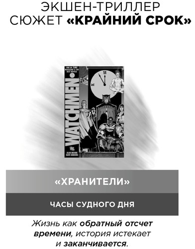 В сюжете крайнего срока время становится оружием. Практически все истории жанра экшен в той или иной мере эксплуатируют время, но в этом внутреннем поджанре злодей превращает его в оружие, устанавливая четкий временной предел и тем самым заманивая героя в ловушку своего замысла. С каждой секундой сюжет крайнего срока сокращает разрыв между «сейчас» и «потом», прокручивая сцены все быстрее и быстрее, взвинчивая темп до максимума. Когда герой лихорадочно пытается справиться с несколькими делами одновременно на пределе времени, динамичность зашкаливает. В каждом шоустоппере фильма «Миссия невыполнима: Протокол Фантом» (Mission: Impossible — Ghost Protocol) четверка агентов ОМН в постоянном цейтноте делает все, чтобы предотвратить Третью мировую. Поскольку помощи им ждать неоткуда и на передышки времени нет, приходится выкручиваться и сочетать упорство с изобретательностью. Шанса исправить ошибку у них тоже нет, поэтому необходимость сделать все правильно с первой и единственной попытки накаляет каждую сцену добела. Ограничение во времени ограничивает и в выборе. Ограниченный выбор влечет за собой безграничную опасность. В «Темном рыцаре» (The Dark Knight) Джокер угрожает взорвать два переполненных парома в полночь. Однако он предлагает пассажирам выход: на каждом пароме находится детонатор от взрывчатки второго парома. Кто нажмет кнопку первым — останется в живых. В противном случае и пассажиры, и экипаж обоих судов погибнет с двенадцатым ударом часов. В фильме «Довод» (Tenet) злодей, замысливший всеобщее уничтожение, изобретает способ обратить вспять энтропию и путешествовать во времени. Он перемещается в будущее в поисках алгоритма, позволяющего инвертировать энтропию всей планеты, и тогда, завладев этой силой, он намерен стереть с лица Земли все живое, в первую очередь человечество.